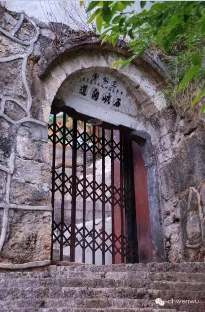 三仙寺前山石门坊上有铭文:“石峨开道,中华民国二十九年(1940年)仲夏月立”等字样,为民国扩建时所题。该寺以溶洞为庙宇,在德宏地区尚属首见,供奉佛像却名为“三仙”,这充分体现了清晚期“儒”、“释”、“道”三教合一,宗教民间化的时代特色,很好地将自然景观与人文景观融为一体,其型制别具一格。