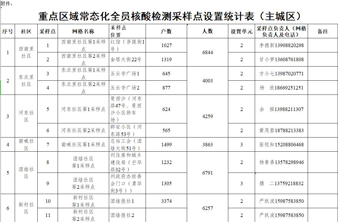 附件:重点区域常态化全员核酸检测采样点设置统计表
