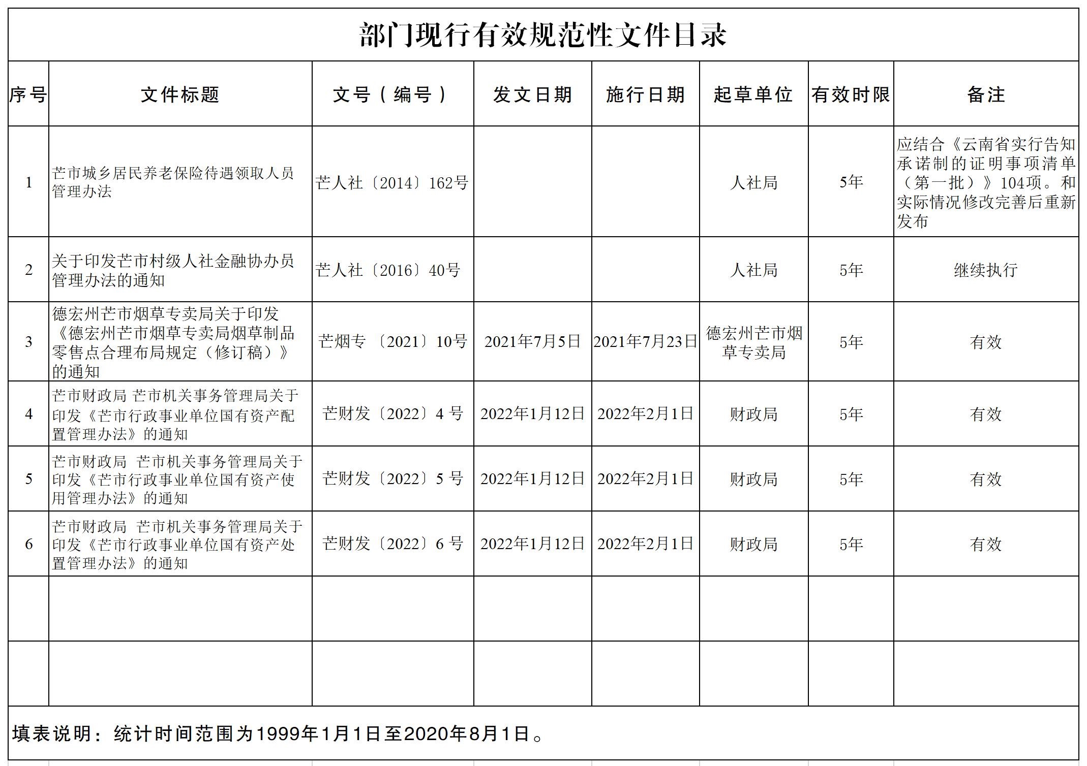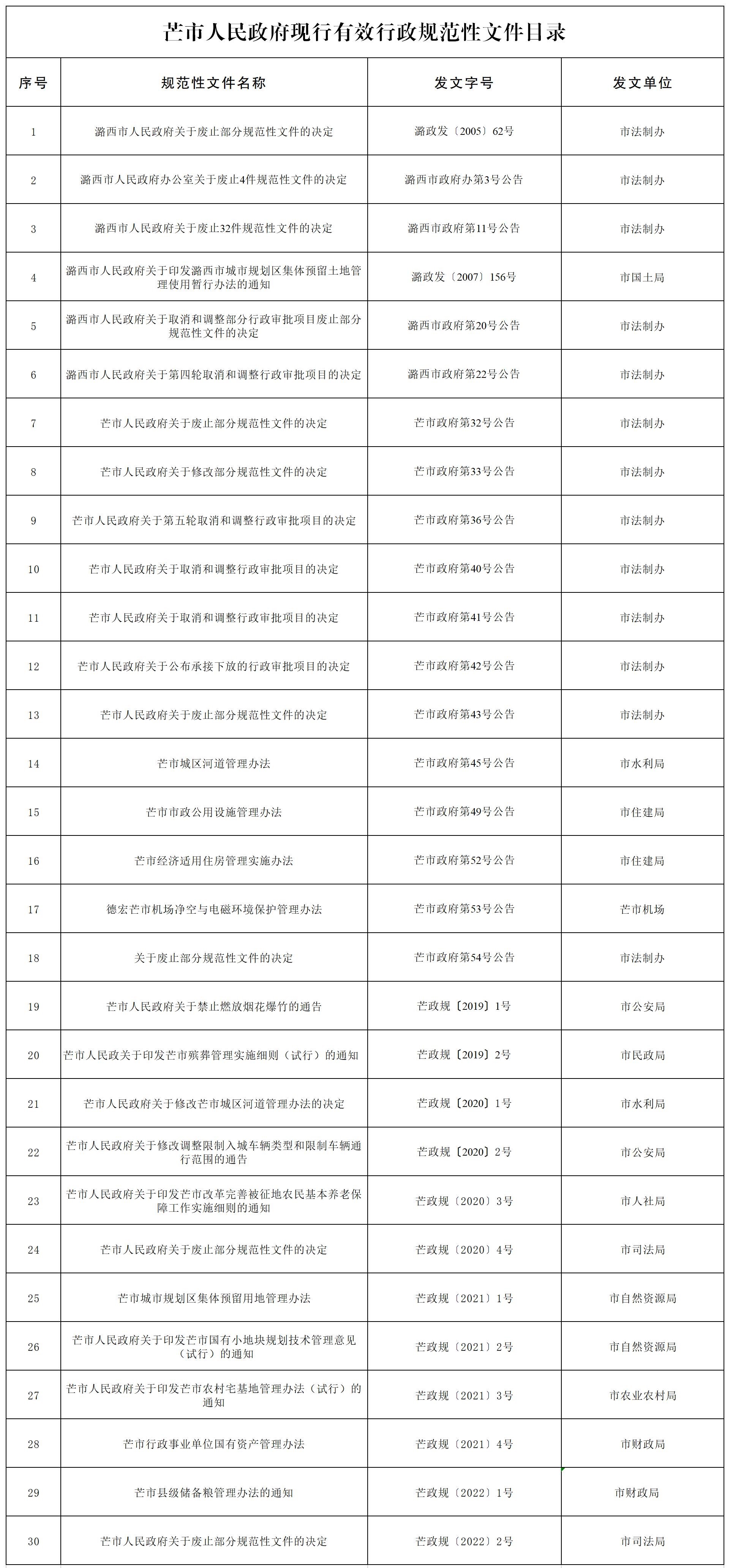 芒市人民政府现行有效规范性文件目录