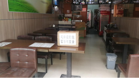 芒市财富中心二楼、金塔大街、人保路的部分餐馆、早点铺,在明显的位置张贴了“疫情期间,不可堂食,只能打包”的字样,店铺里没有人在用餐。位于金塔大街“林记千里香馄饨”店的老板告诉记者,自从发布了不得提供堂食的通知后,自己就在餐馆张贴了相关提示,没有提供堂食,因此生意也受到了一定的影响,“但是没办法,疫情期间嘛,该遵守的还是要遵守”他说。