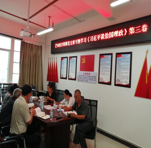 芒市医疗保障局党支部成员围绕学习主题,结合本单位实际和各自分工领学。