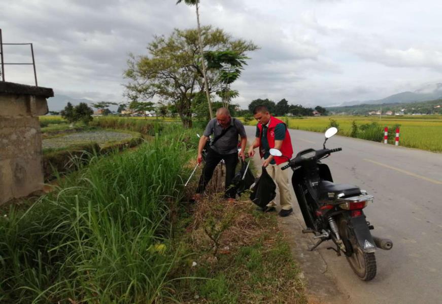 当天下午,芒市医疗保障局对河道内对两侧的垃圾及漂浮物、杂物进行清理和打捞,有些杂物、垃圾无法用工具彻底清理,工作人员就直接用手将杂物捞起,拿编织袋把垃圾装满,再运到河坝上面拉走,避二次污染。