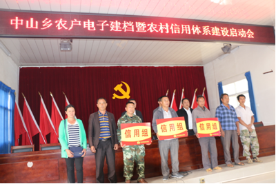 最后,中山乡党委副书记、乡长徐龙、芒市农村信用合作联社党委副书记、主任张勇对中山乡8个信用组:坪子寨、大河新寨、尖山、青树、楠木河一组、中山上寨、芹菜水、茨竹坝进行了授牌。中山乡信用社主任刘健还对与会人员做了征信知识宣传培训以及农户电子建档培训,会议取得了预期效果。