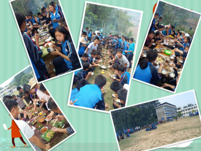下午2点30分,虽烈日当头,但丝毫不影响师生们的热情,生活技能大比拼之美食大赛如期举行。各班按活动方案,在田径场找到所属位置,以学校提供的食材,开始烹饪起各自的美食。我生火、你捡菜、他烹制,忙得不亦乐乎。5时整,各班的参赛菜品已有序地摆上了评委席,面对学生制作出的佳肴,不得不佩服学生们的想象力和动手能力。