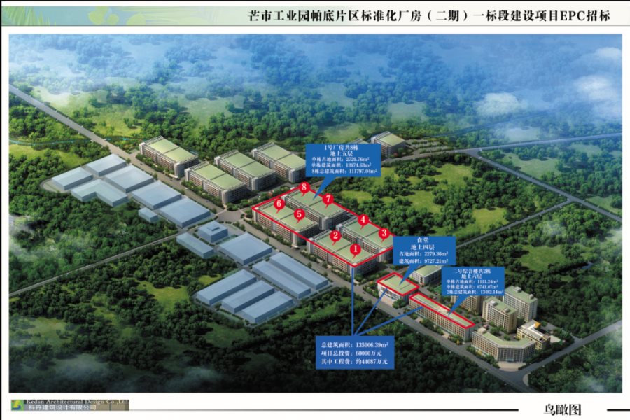 芒市工业园帕底片区标准化厂房(二期)项目位于芒市工业园帕底片区,规划用地面积218亩。项目总建筑面积约336970 ㎡,总投资约:126805万元。建设内容:包括标准化厂房、综合楼、宿舍楼、及厂区道路及配套设施等。目前二期项目分两期实施,其中一标段建筑总面积约137500㎡,其中:厂房8栋,建筑面积约111800㎡;综合楼2栋,建筑面积约13500㎡;食堂1栋,建筑面积约9700㎡;人防地下室约2500平方米。计划投资约60000万元。