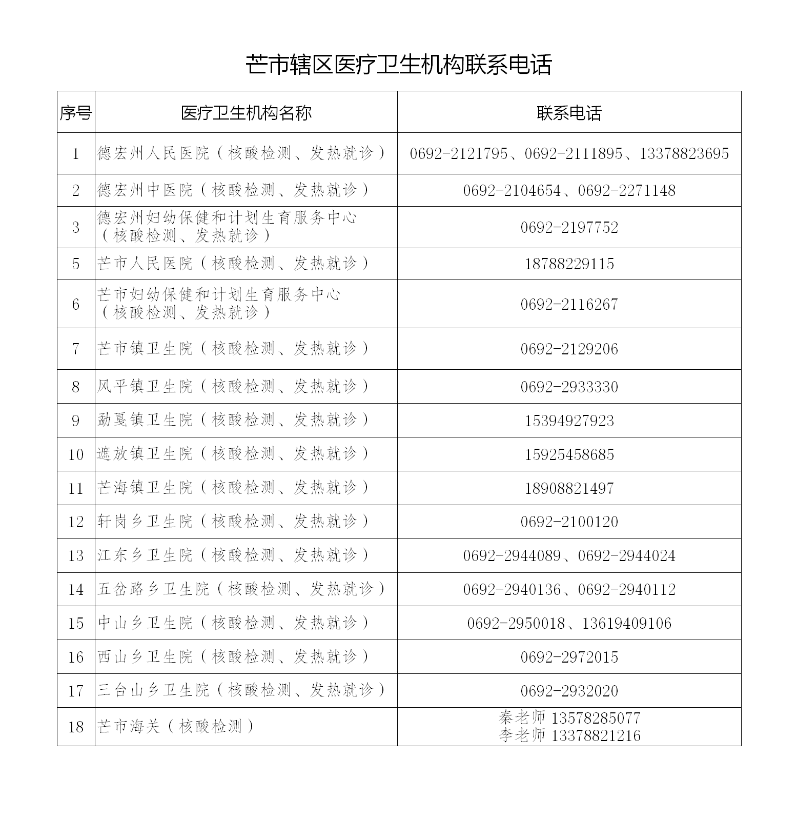 2.芒市辖区医疗卫生机构联系电话