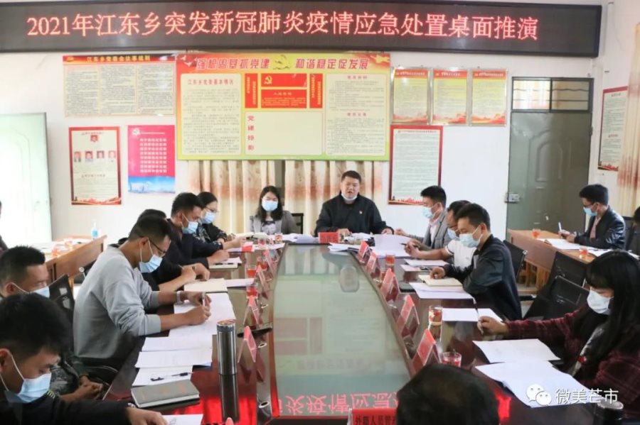 4月9日,江东乡围绕“出现新冠肺炎确诊病例、启动应急响应机制、防控单点疫情爆发、区域临时管制”等各种场景中的不同阶段进行推演,就可能发生的疫情风险及处置方法进行解答、讨论,并认真梳理推演过程中存在的问题,进一步细化完善各工作组工作职责。
