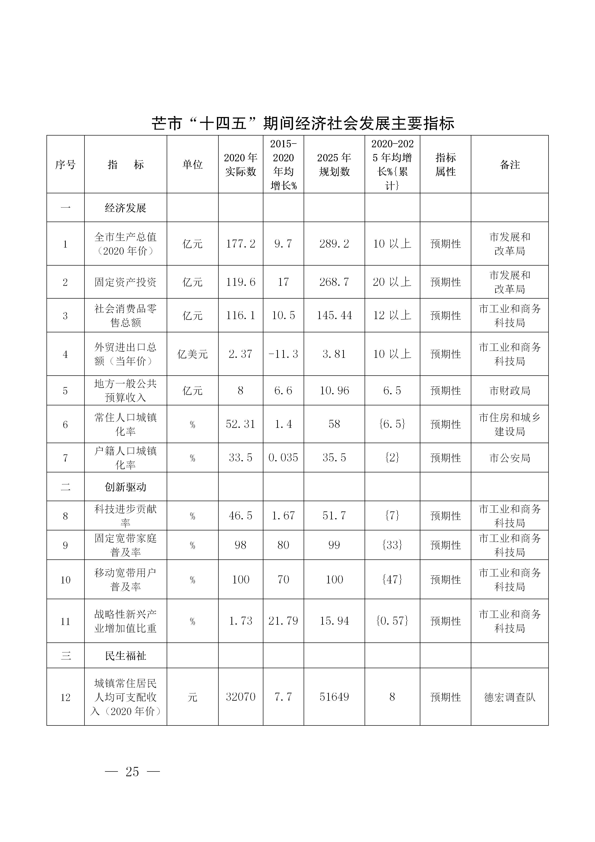 “十四五”时期,芒市经济社会发展主要目标,综合考虑国内外发展趋势和芒市发展条件,坚持目标导向和问题导向相结合,坚持守正和创新相统一,到2025年,全市经济社会发展跃上一个新台阶,高质量跨越式发展取得显著成效。