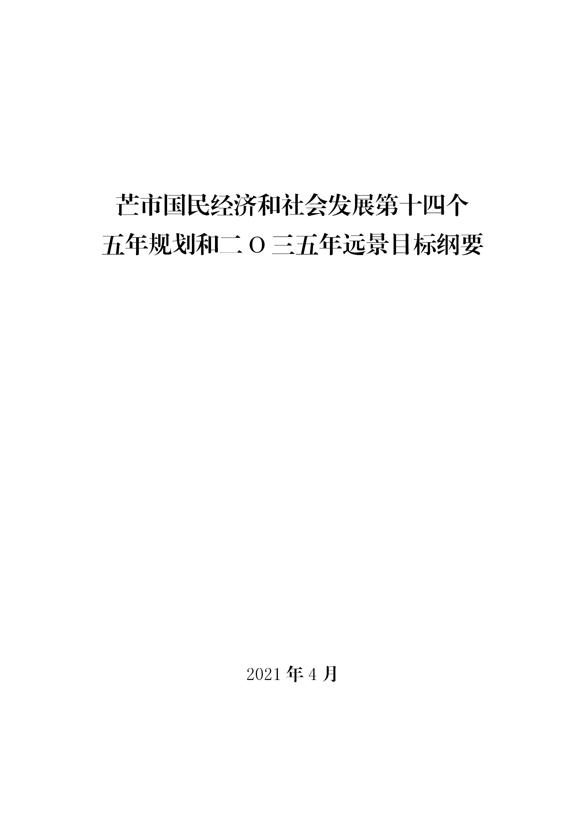芒市国民经济和社会发展第十四个五年规划和二O三五年远景目标纲要是政府履行职责的重要依据,是宏观调控和微观主体行为的导向,是全市各族人民齐心协力,建设沿边民族团结进步示范市、宜居宜业生态田园示范市、面向南亚东南亚辐射中心示范市、绿色经济发展示范市(简称“四个示范市”)的行动纲领。汇聚全市各族人民奋进新时代、开启新征程的磅礴力量,全面完成纲要提出的任务和奋斗目标,是全市各级各部门义不容辞的责任。