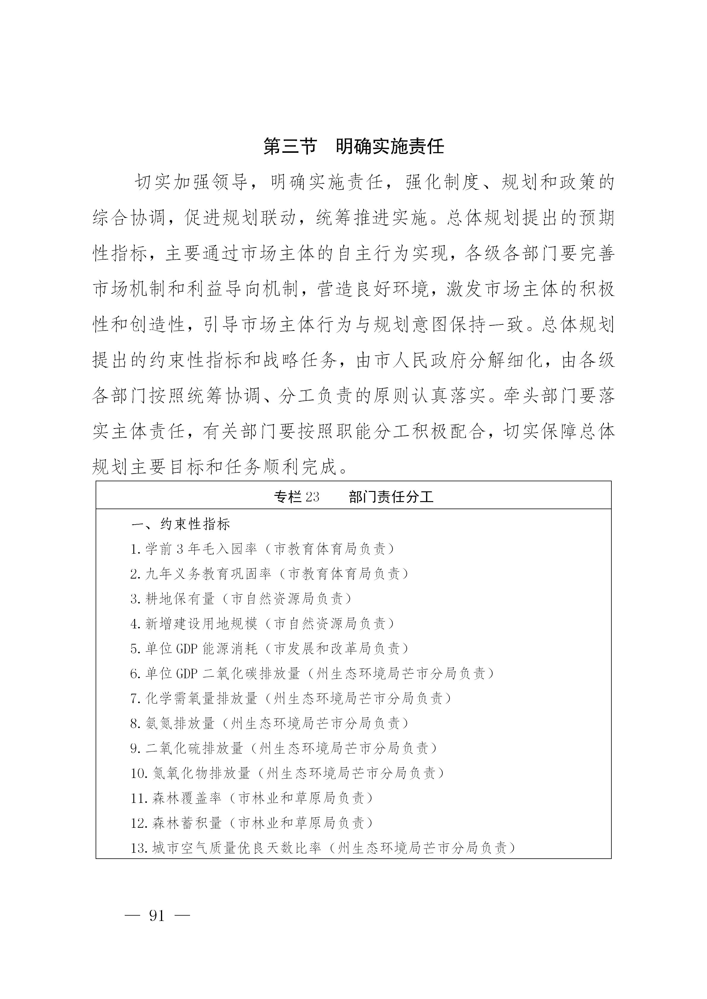 完善规划实施责任分工和落实体系,加强规划实施的组织领导,把“规划图”“路线图”落实为“施工图”“作战图”,确保责任到位、措施到位、投入到位。市委督查室、市政府督查室对总体规划分解立项、挂图作战,明确处级领导挂钩责任。处级领导对联系挂钩的主要目标和主要任务,以及重大工程和重大项目完成情况负领导和协调责任,对工作推进中出现的问题,实行问题清单动态管理。各级领导要始终保持敢闯敢干、永不懈怠的精神状态,干字当头,真抓实干、埋头苦干。严格执行工作责任制,特别是对重点任务、重大项目、重大工程、重大改革、重大政策,明确各方责任,层层传导压力,确保不折不扣落实到位。建立完善督查机制,强化督查问责,严厉整肃庸政懒政怠政行为。坚持激励与约束并重,按照“三个区分开来”的要求,落实好干部容错纠错保护激励机制,激励干部主动担当、积极作为,以实干促进发展,以实干赢得未来。