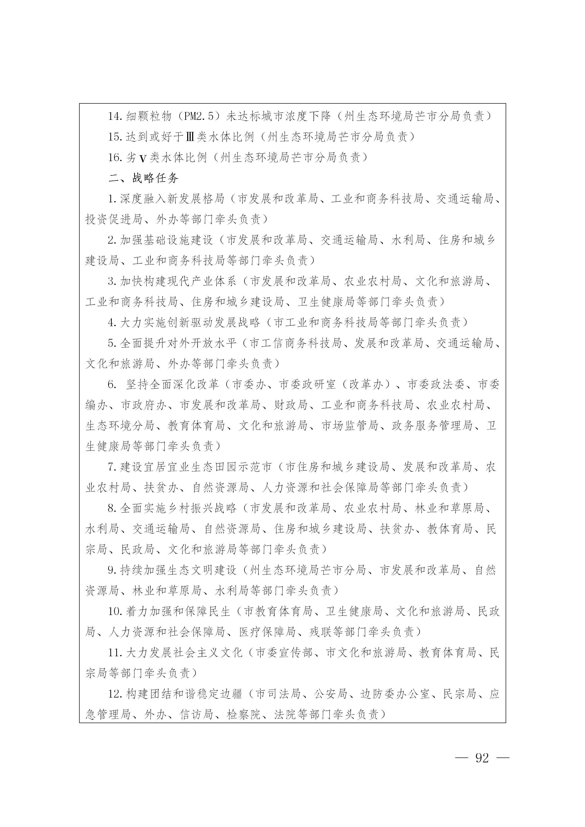 ——经济发展取得新成效。全市地区生产总值年均增长10%以上;三次产业结构调整为10:30:60;地方一般公共预算收入年均增长6.5%以上;固定资产投资年均增长20%以上;社会消费品零售总额年均增长12%以上。主要经济指标平衡协调,投资效率和企业效益明显上升,服务业比重进一步提高,战略性新兴产业形成一定规模,发展质量和效益明显提升,公共服务更加公平可及,全市各族人民获得感、幸福感、安全感显著增强。
