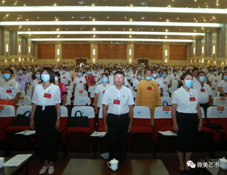 下午2时30分,中国共产党芒市第三次代表大会在雄壮的国歌声中开幕。