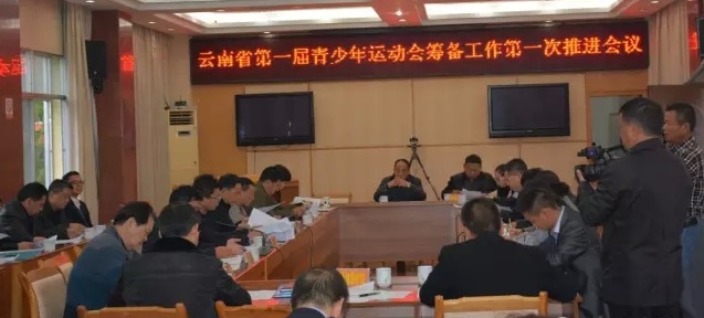 2015年12月30日上午,云南省第一届青少年运动会筹备工作第一次推进会议在芒市人民政府综合楼四楼会议室召开。云南省第一届青少年运动会筹备委员会副主任、德宏州人民政府副州长杨世庄出席会议并讲话,会议由云南省第一届青少年运动会筹备委员会委员、芒市人民政府副市长吴景松主持。筹委会各工作处处长、副处长、联络员以及州市相关单位领导70余人参加了会议。