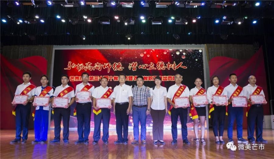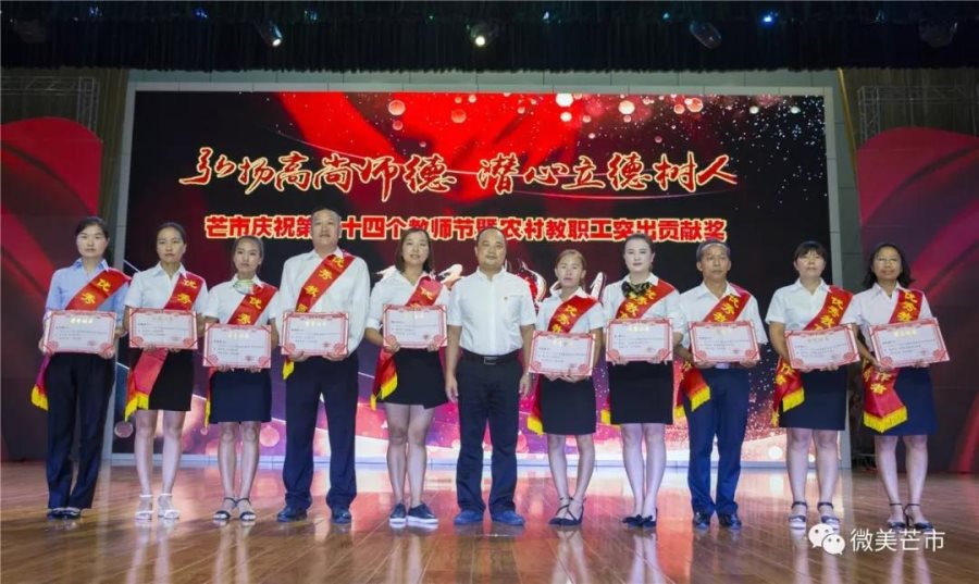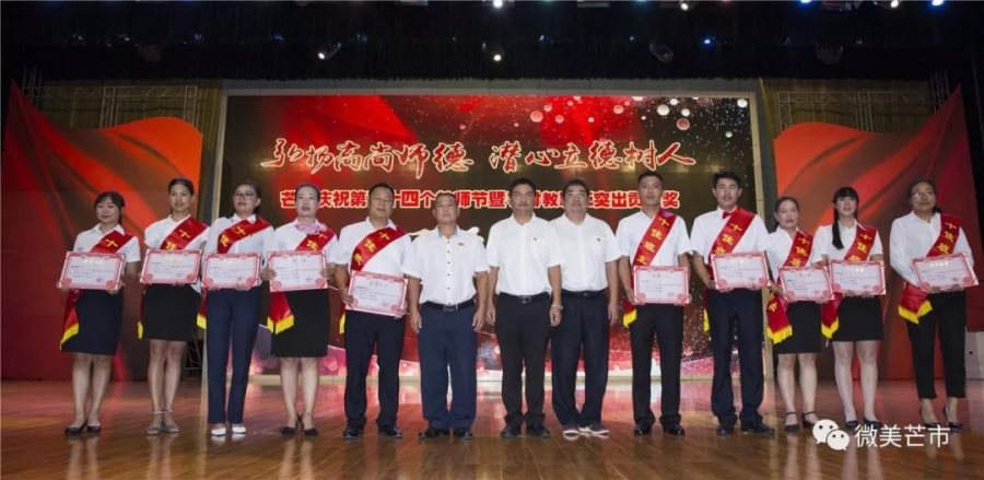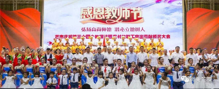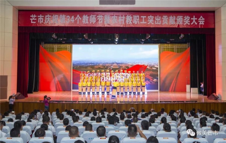 为集中展现新时代芒市广大教师坚守讲台、筑梦中国的新形象新风貌,进一步激励广大教师弘扬高尚师德,不忘初心、牢记使命、潜心立德树人。9月10日下午,芒市举行系列活动庆祝教师节暨农村教职工突出贡献颁奖大会,全面总结近年来教育事业发展取得的成绩,安排部署今后一段时期全市教育改革发展工作,表彰奖励先进集体和先进个人。芒市委书记赵冬梅出席会议并讲话,芒市委副书记、市长毛晓、芒市四班子领导及全市各幼、小、中学教师共800余人参加了大会。