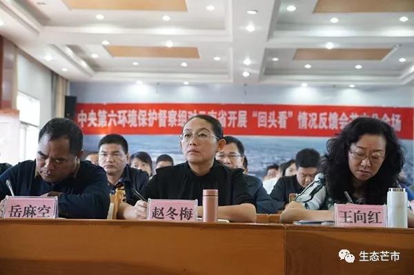此次对云南省开展“回头看”情况反馈会,由阮成发省长主持,朱小丹组长通报督察意见,陈豪书记作表态发言,黄润秋副组长,督察组有关人员,云南省委、省政府领导班子成员及有关部门主要负责同志等参加会议。