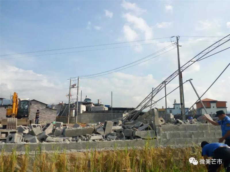 有3户村民在没有合法用地手续的情况下,在芒市镇银河新村进行违法建设,在开始进行基础建设时,执法人员接到反映后即刻到现场进行制止,向有关当事人进行宣传教育20余次,并下发了《限期拆除通知书》,然而当事人非但没有自行拆除,当事人何某某更是利用国庆假期期间将整幢房屋都建盖起来了。对此,芒市人居办决定组织相关部门采取集中拆除行动。