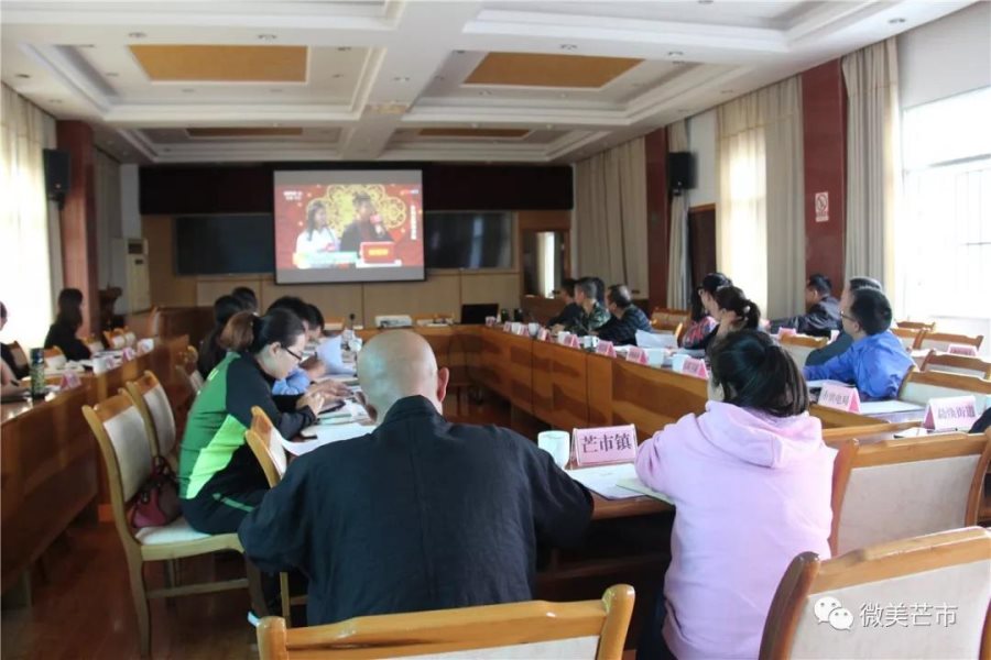 与会人员观看了《乡约》栏目走进楚雄禄丰的影像材料,对栏目的流程、内容有了初步的认识。会议宣读了《CCTV7〈乡约〉走进芒市节目录制工作方案》,并就涉及的30余个市直单位和部门的工作职责进行了详细说明和安排。