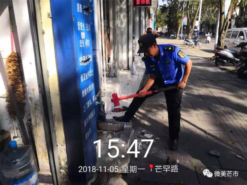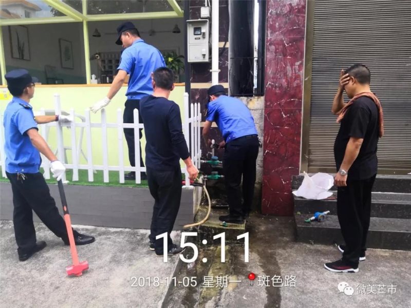 11月5日,芒市综合执法局联合市供排水公司依法拆除城区内逾期仍未自行拆除的水龙头、水槽64处。