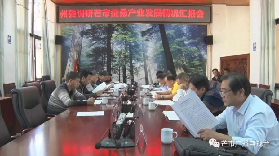 在之后召开的座谈会上,市委常委、市人民政府常务副市长杨绍刚向州委调研组汇报了关于芒市桑蚕产业发展的基本情况,提出了现阶段取得成效和存在的困难问题,并对下一步如何做好桑蚕产业发展工作提出了相应的计划。