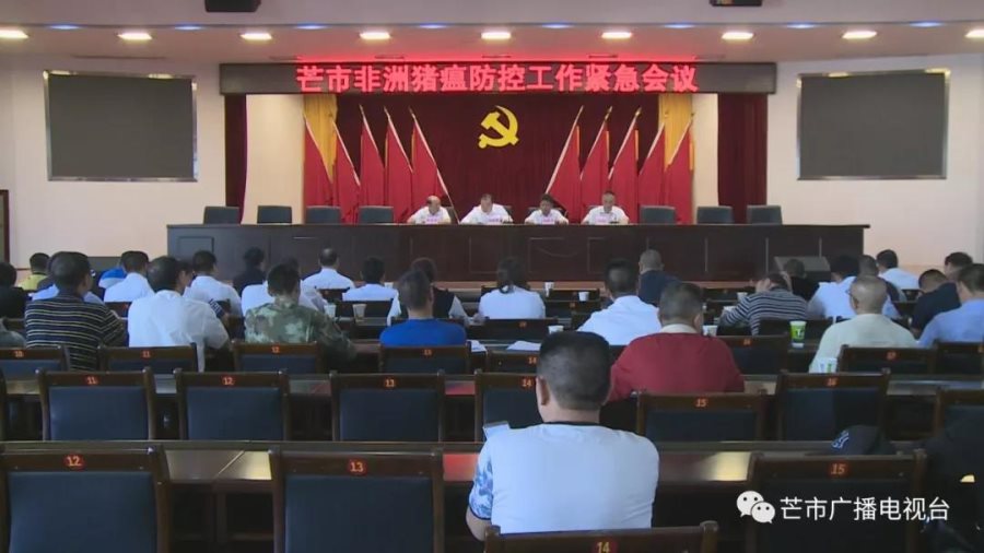 11月3日下午,芒市召开非洲猪瘟防控工作紧急会议,贯彻落实11月1日国务院、省政府、州政府非洲猪瘟防控工作推进视频会议精神,进一步安排部署我市非洲猪瘟等动物疫病防控工作。