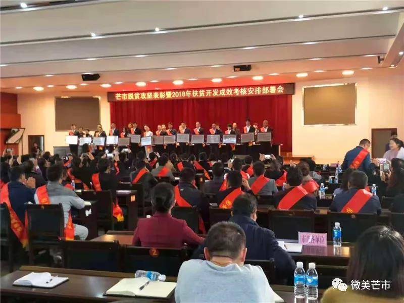 11月21日,芒市召开脱贫攻坚表彰暨2018年扶贫开发成效考核安排部署会,全面贯彻落实党中央、省、州关于脱贫攻坚决策部署,总结我市近年来扶贫开发成绩和经验做法,表彰一批先进典型。同时,通过分析当前脱贫攻坚形势和存在问题,安排部署2018年扶贫开发成效考核相关工作。