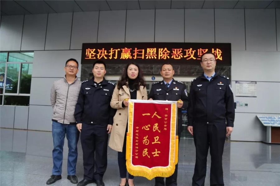 12月19日上午,中石化德宏石油分公司负责人将一面绣着“人民卫士,一心为民”的锦旗送到芒市公安局,对芒市公安局打击走私成品油,及时消除了成品油市场安全隐患,保障了消费者的合法权益表示诚挚的谢意。