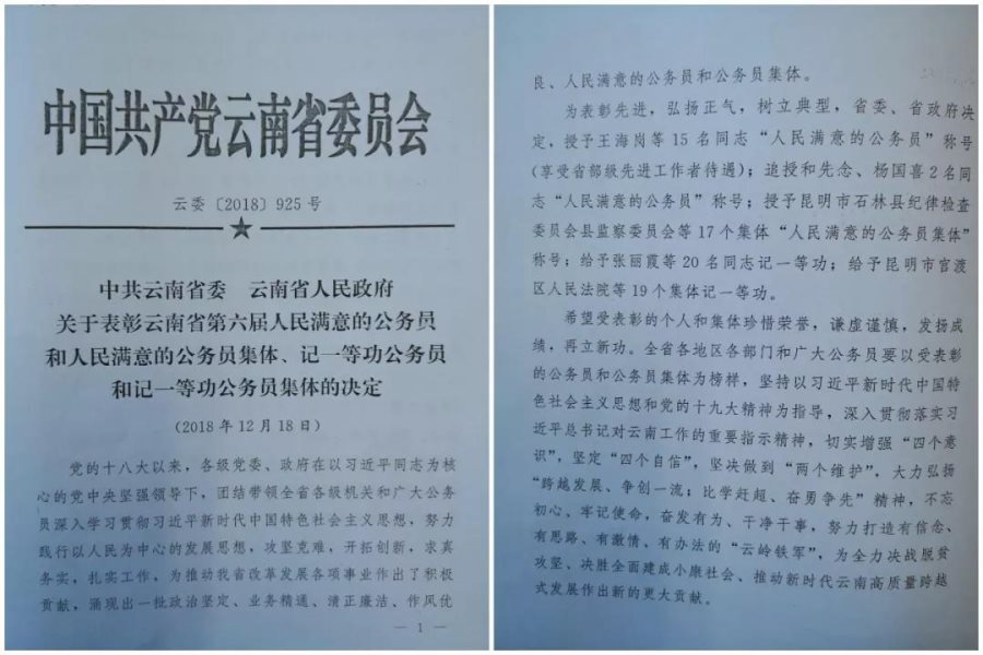 1月9日,云南省第六届人民满意的公务员和人民满意的公务员集体表彰大会暨先进事迹报告会在昆明召开,德宏州有2个公务员集体和2名公务员受表彰。