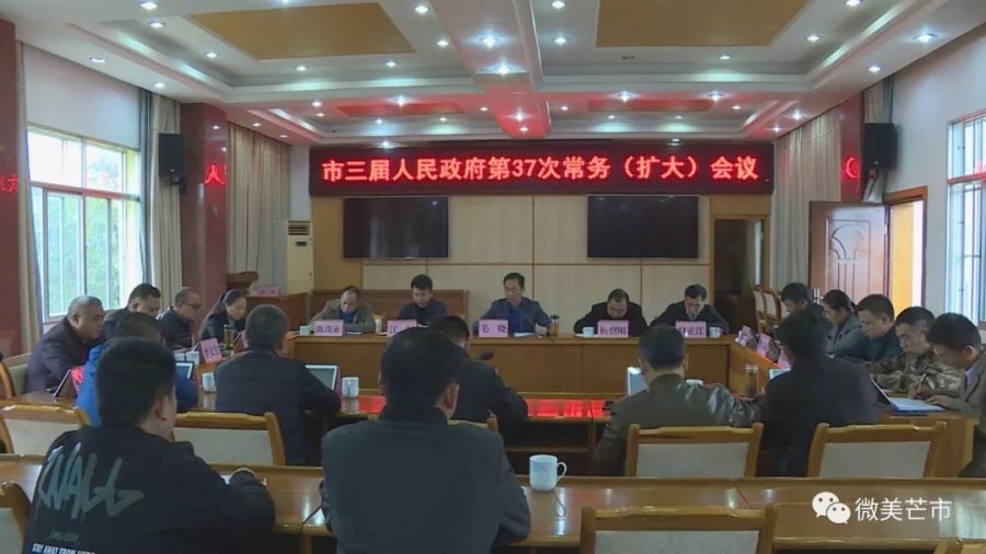 1月8日,芒市委副书记、市长毛晓主持召开芒市三届人民政府第37次常务(扩大)会议,研究讨论芒市2019年政府工作报告、芒市2018年国民经济和社会发展执行情况和2019年国民经济和社会发展计划等6个当前重大决策、重大项目、重要事项议题。