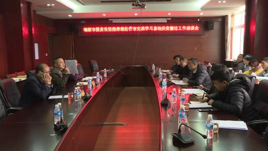 在交流会上,芒市政协主席、市搬迁指挥部指挥长鲁志坚介绍了芒市易地扶贫搬迁工作情况,考察组成员就易地搬迁工作中各项细节工作进行了咨询,交流学习解决方法及经验。