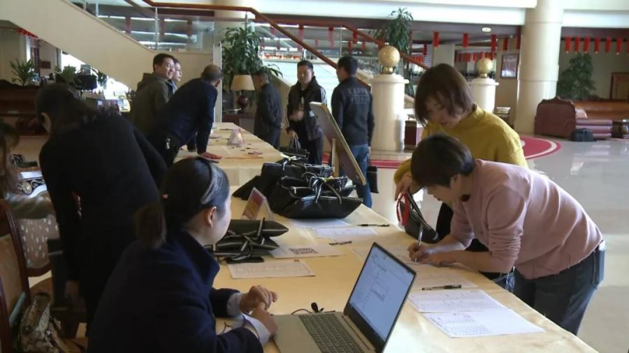 报到现场只在大厅里立一个简单的引导牌,简单、朴素的会风让人倍感清新。工作人员早早守候在工作台边,热情地做好服务工作。代表们到达后,签到、领取材料,一切井然有序。