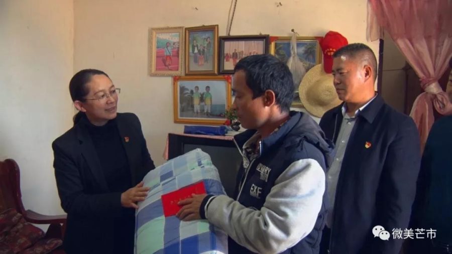 1月24日,芒市委书记赵冬梅深入三台山、西山乡走访慰问困难群众、残疾人和老党员、劳动模范,给他们送去党和政府的深切关怀和新春祝福。