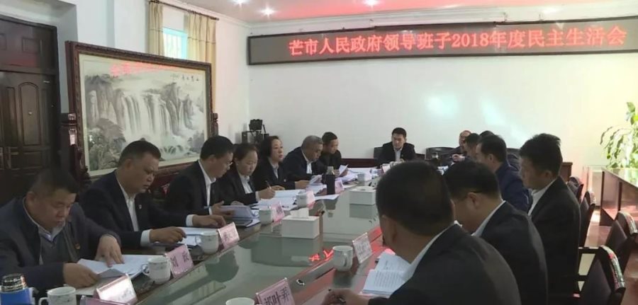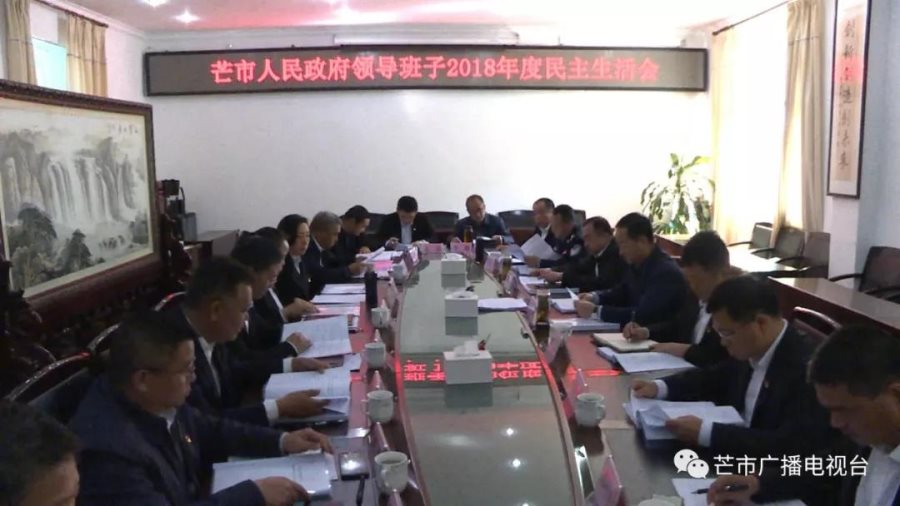 1月24日,芒市人民政府党组班子2018年度民主生活会召开。芒市委副书记、市长毛晓主持会议,芒市委常委、纪委书记包锐到会指导。