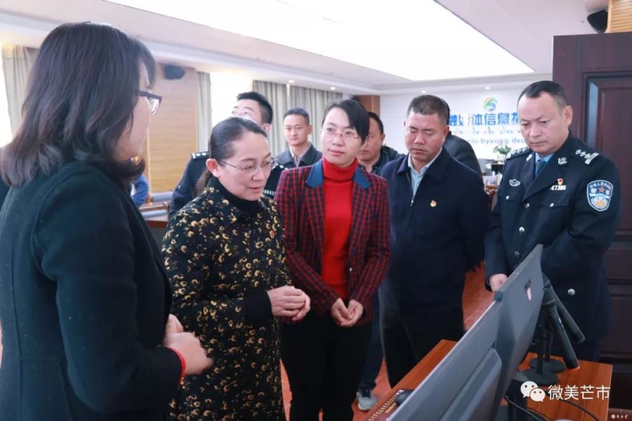 在芒市融媒体信息指挥中心,赵冬梅向坚守岗位的新闻工作者致以新春祝福的同时,对芒市广播电视台2018年所做的工作给予了充分的肯定,并希望芒市广播电视台干部职工再接再厉,2019年在融媒体建设、打造最美县城等各项工作中做出更大的贡献。