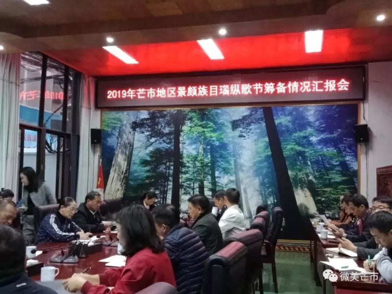 为确保2019年芒市地区目瑙纵歌节顺利举行,2月12日,在市委一楼召开了2019年芒市地区景颇族目瑙纵歌节筹备汇报会。市委书记赵冬梅,市人大常委会主任岳麻空,市人大常委会原主任张勒干,市委常委、市委办主任杨新常,组委会各组组长,风平镇、轩岗乡参加会议,会议由祁叶弄副市长主持。