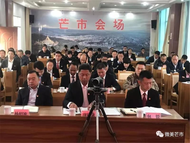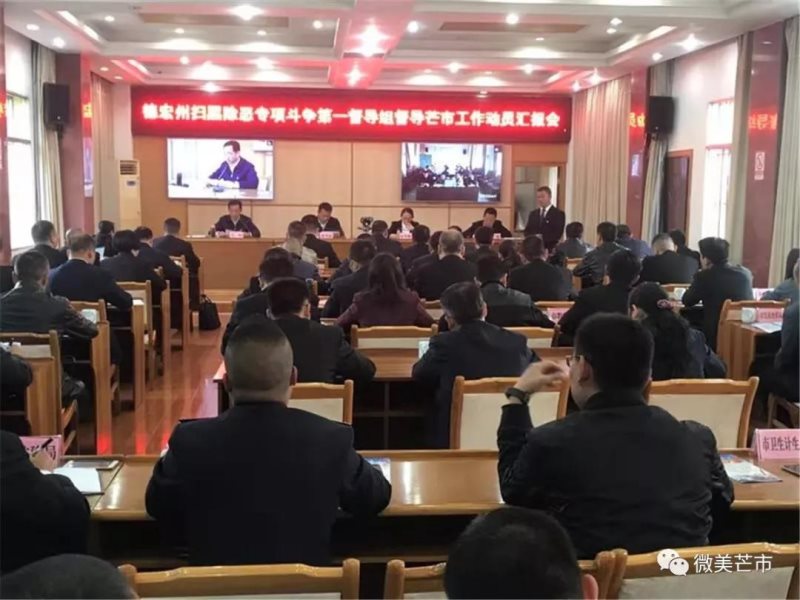 2月25日,德宏州扫黑除恶专项斗争第一督导组督导芒市工作动员汇报会在芒市召开。德宏州第一督导组组长、州政法委专职副书记张雪斌,芒市委书记赵冬梅及在家的市委常委、市人大、市政府、市政协相关领导,市扫黑除恶专项斗争领导小组成员单位主要负责人参加了会议,会议以视频会形式召开,芒市各乡镇(街道、农场)人员在分会场通过视频收听收看汇报会。会议由芒市委副书记、市长毛晓主持。