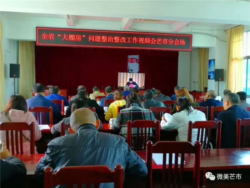 全省视频会议之后,芒市召开了芒市大棚房问题整改工作推进会,传达学习省长阮成发在“大棚房”问题整改部署会上的讲话精神,对芒市“大棚房”问题专项清理整治行动进行安排部署。