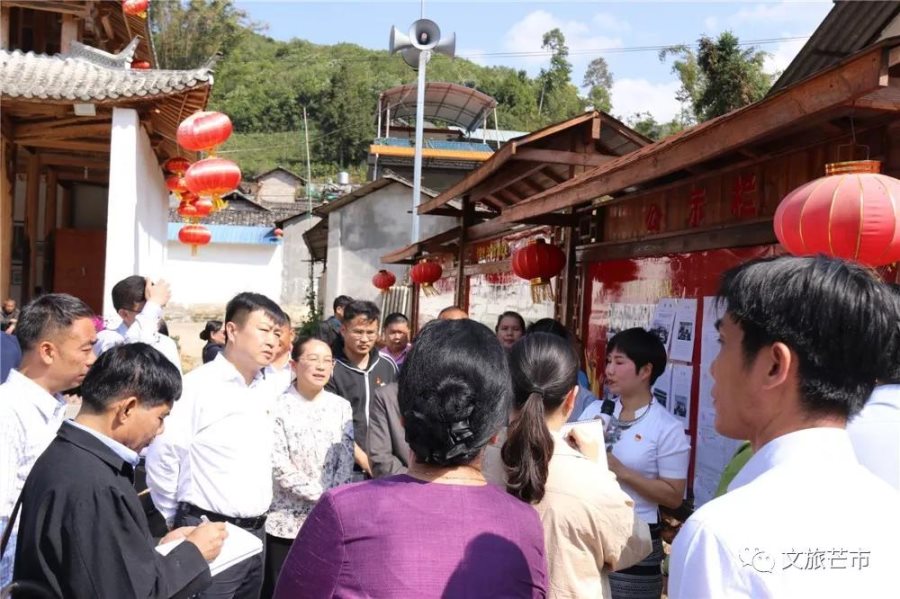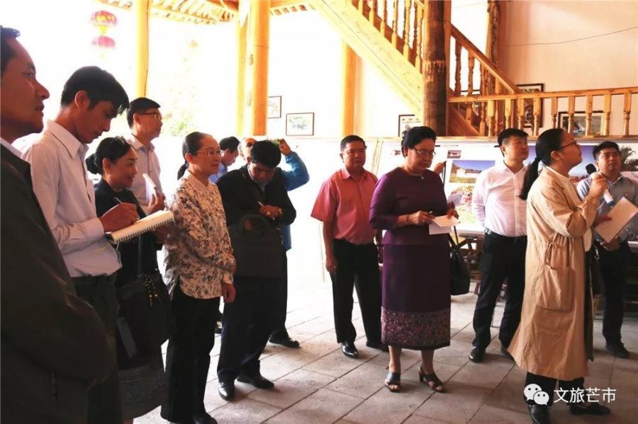 随后,在回贤村文化活动室,老挝考察团听取了回贤村发展美丽乡村旅游的经验及思路。芒市文化和旅游局驻回贤工作队联同村党总支立足于回贤乡村丰富的旅游资源,民族文化绚丽多姿的牛场傈僳村、芒龙山德昂族村,丰富的自然地理地貌和独特的气候优势等重要资源,通过积极探索,组建了德宏州第一家乡村旅游合作社——“芒市回贤五加峰乡村旅游专业合作社”,同时还打造了“避暑山庄”,“长寿村”,“画家村”三张亮丽名片。现在回贤村的农家乐、民宿、生态养生体验等各种乡村旅游业态不断涌现,美丽乡村旅游正在带动村民脱贫致富。