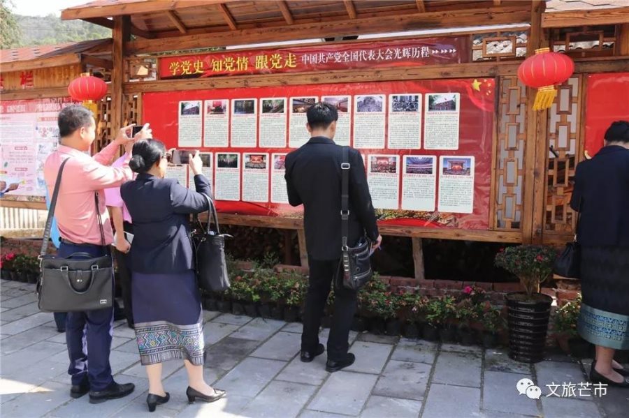 3月19日,由老挝中组部党委副书记、副部长万赛 ?蓬沙万带领的老挝干部考察团一行对芒市回贤村的美丽乡村旅游和基层党建工作进行参观考察。德宏州州委常委、组织部部长李志明,芒市委书记赵冬梅,市委常委、市委组织部部长吴翔,市委常委、市委办公室主任杨新常等州市领导陪同考察。