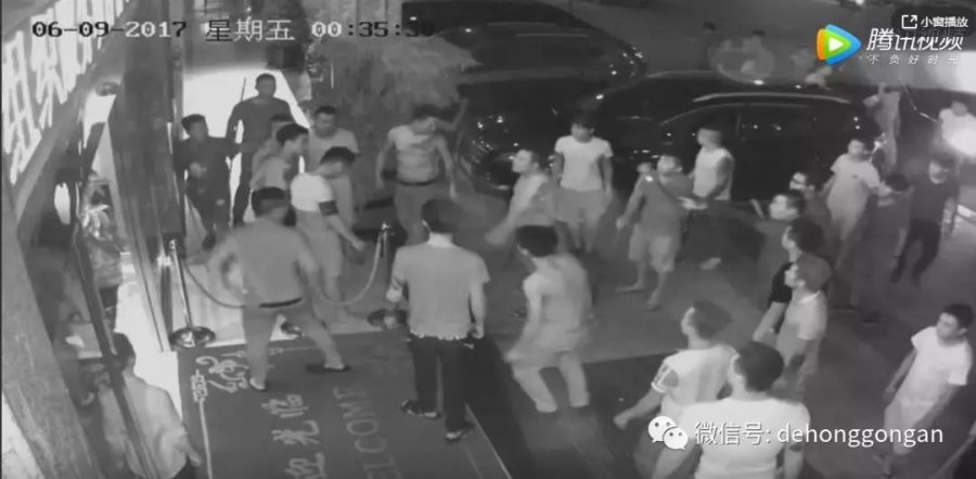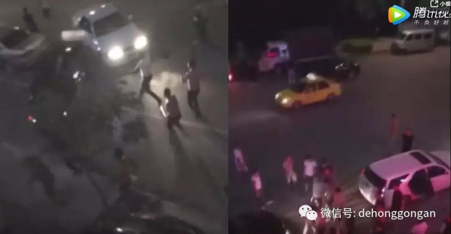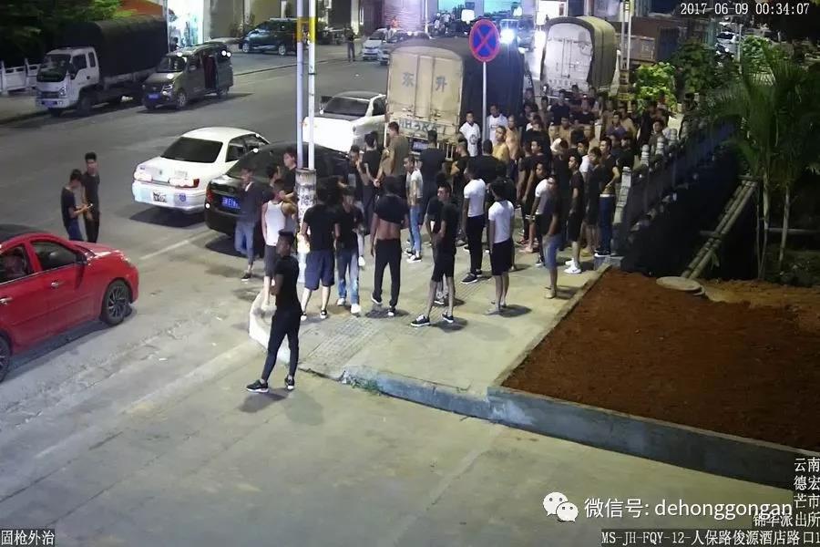 接到报警,芒市公安局巡逻民警火速赶到现场时,双方的聚众斗殴已造成两人头部、脸部受轻微伤,一方的两辆汽车被砸。