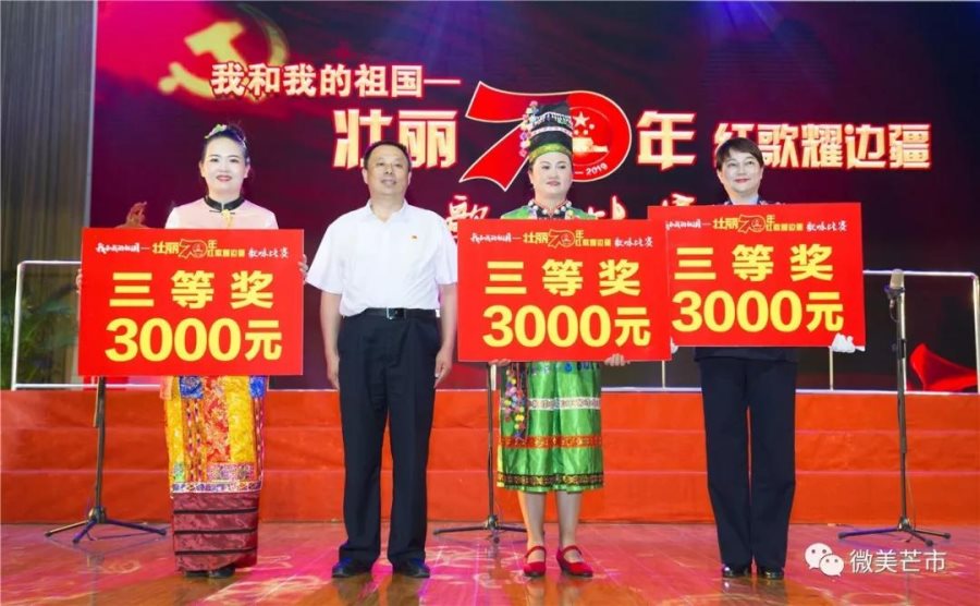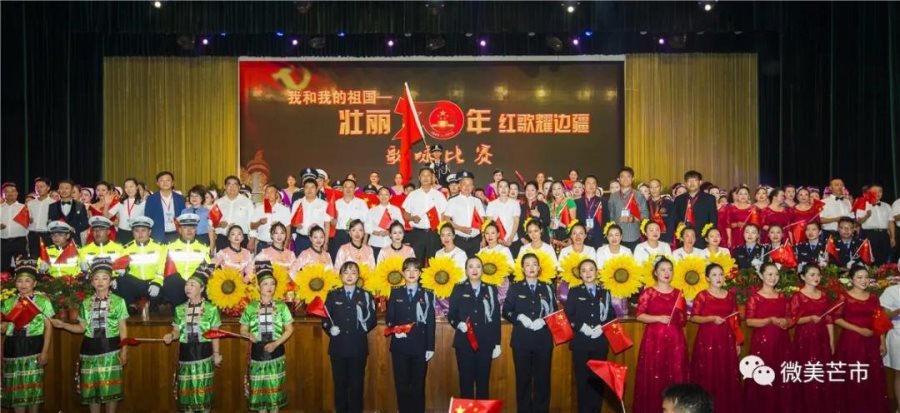 9月28日晚,“我和我的祖国——壮丽70年 红歌耀边疆”歌咏比赛决赛在芒市会堂举行。芒市委书记赵冬梅、市委副书记穆晓康、市驻村扶贫工作队总队长孙文东,芒市政协主席鲁志坚等市级领导到场观看比赛。