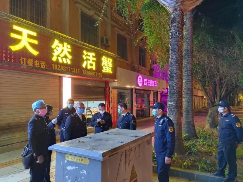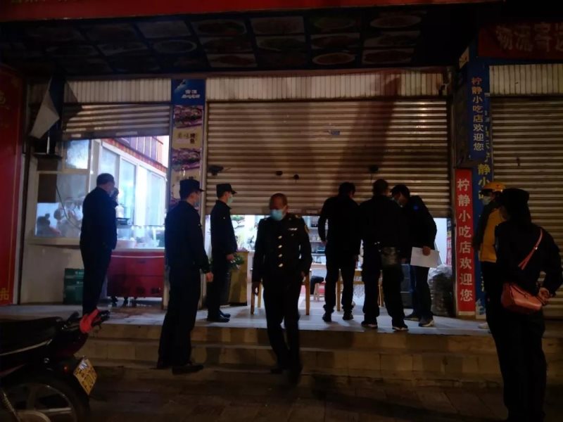 防止病毒传染,饮食安全最重要。根据《芒市应对新型冠状病毒感染的肺炎疫情工作指挥部关于暂停餐饮经营单位承接到店用餐业务的通告》要求,结合当前我市新型冠状病毒感染的肺炎疫情防控工作形势的变化,芒市市场监督管理局、芒市公安局和芒市综合执法局于2月4日晚对城区夜市烧烤开展联合专项检查行动,要求所有餐饮服务单位暂停到店用餐业务。
