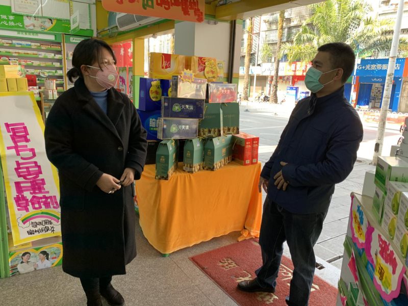 杨刚局长一行人深入芒市部分定点零售药店仔细询问与疫情防控相关的药品、医用耗材、消毒液等物资的价格及供销情况,尤其是口罩、额温枪、酒精、消毒液、防护用品及奥司他韦、连花清瘟等抗病毒药品的储备销售、价格执行情况,针对上述医药物质基本脱销的情况,杨刚要求药店要在疫情防控关键时期,想方设法通过各种渠道筹集广大市民所急需的防护口罩、酒精、84消毒液等紧急物资,他强调,全市定点药店在疫情防控期间要严格执行医保定点协议,做到诚信经营并引导群众有序限量购买,维护各类药品、医用耗材价格稳定,全力配合医保部门开展各项工作,并通过药店窗口广泛宣传应对疫情举措,切实做好疫情防控工作,为人民群众服务,为我市坚决打赢疫情防控阻击战作出应有的贡献。