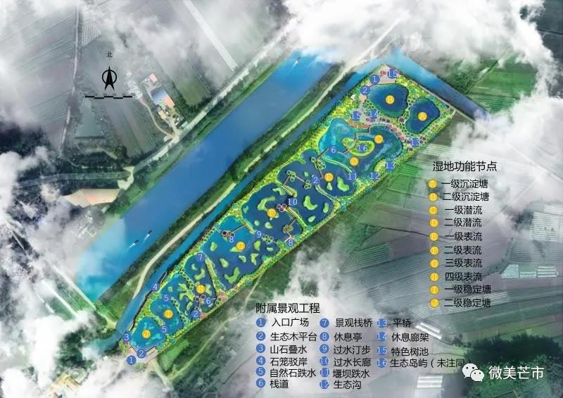为保证湿地正常进出水,结合城市总体规划,板过河、南秀河滨河湿地选在板过河、南秀河与芒市大河交汇口的下游处,南木黑河湿地拟建于南木黑河入新广沙河河口。工程主要利用板过河、南秀河入芒市大河河流下游河滩,以及南木黑河入新广沙河河滩,建立河口湿地,对上游的污染进行拦截、净化水质。工程建设内容主要包括拦水坝、沉砂池、配水渠、氧化塘、清运步道、兼性塘、潜流湿地、透水梗、布水槽、表流湿地、集水槽、管理通道、垃圾池和植物配置等内容。