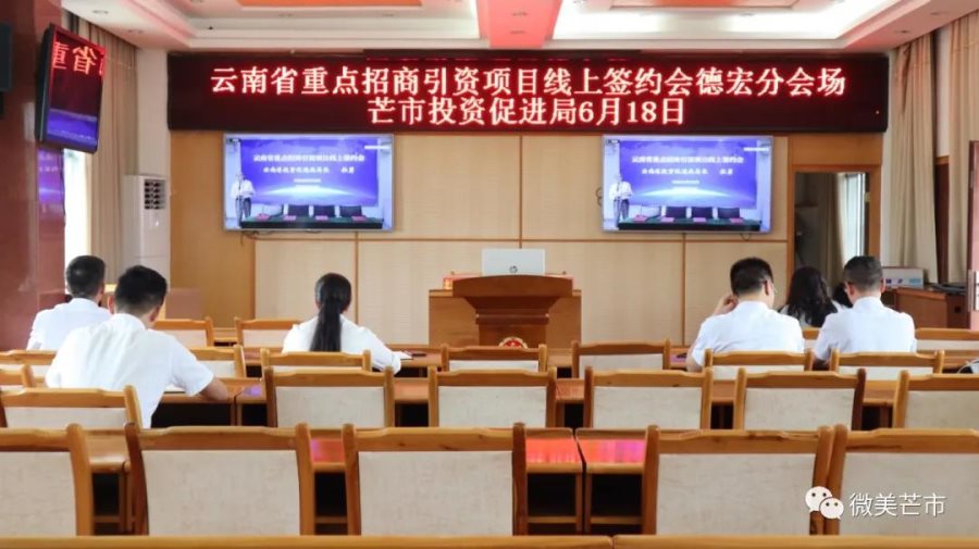 6月18日下午,云南省重点招商引资项目线上签约会在昆明召开,全省共15个州市参加签约,其中,芒市城市地下空间开发项目在德宏州分会场签约,市人民政府副市长孟玉相坐与北京新合作商业发展有限公司的代表进行了签约,仪式上芒市投资促进局、芒市住房和城乡建设局、芒市工业商务科技局等领导共计9人参加见证签约。