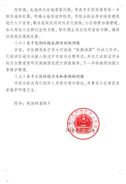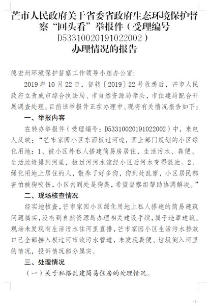 芒市人民政府关于省委省政府生态环境保护督察“回头看”举报件(受理编号:D53310020191022002)办理情况的报告(补公开)