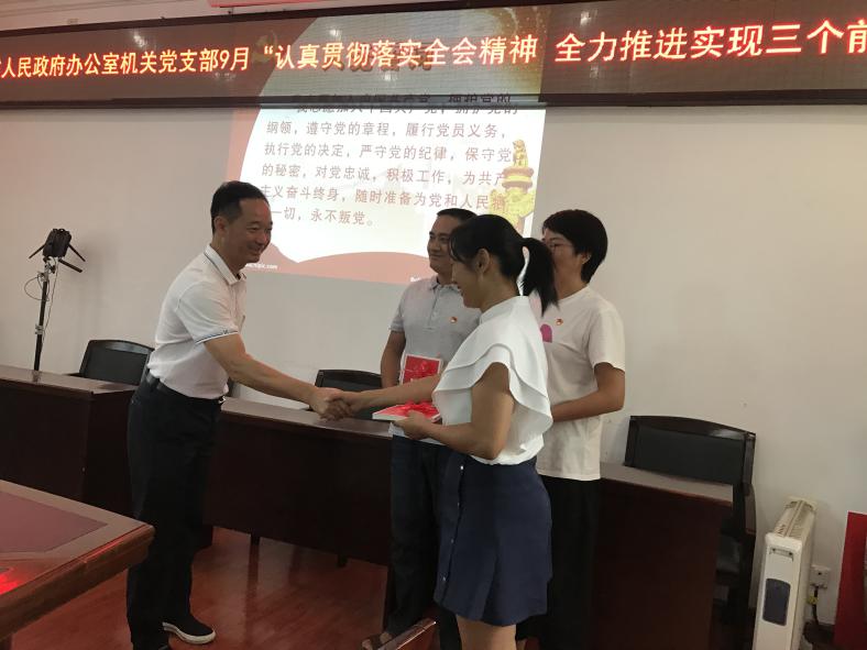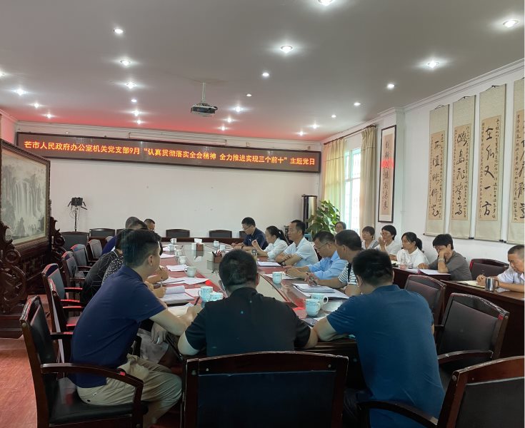 9月7日,市政府办机关党支部组织全体机关党员干部开展“认真贯彻落实州市全会精神,全力推进力争实现三个前十”的9月主题党日活动,市委书记、市长毛晓以党员身份参加了主题党日活动。