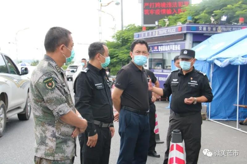 9月18日上午,芒市委副书记、市人民政府党组书记谢金翔督促检查芒市重点疫情防控查缉点情况,看望坚守在查缉一线的民警、辅警、民兵和医务工作者,鼓励大家众志成城,守护家园,坚决打赢疫情防控阻击战。市人民政府副市长、市公安局局长陪同督查。