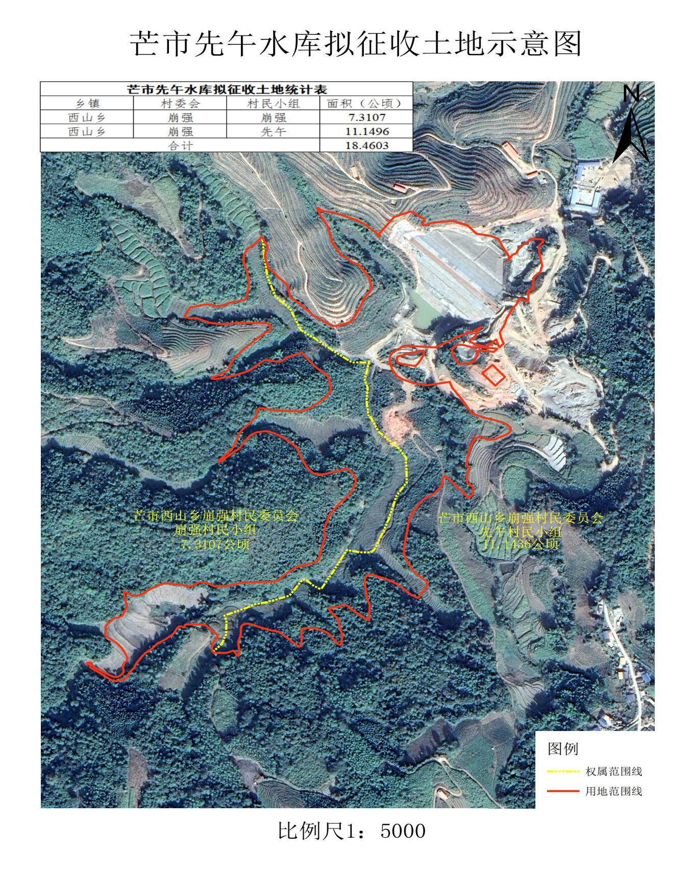 位置范围:涉及芒市西山乡崩强村民委员会崩强村、先午村等1个乡(镇)1个村民委员会2个村民小组,详见拟征地示意图。