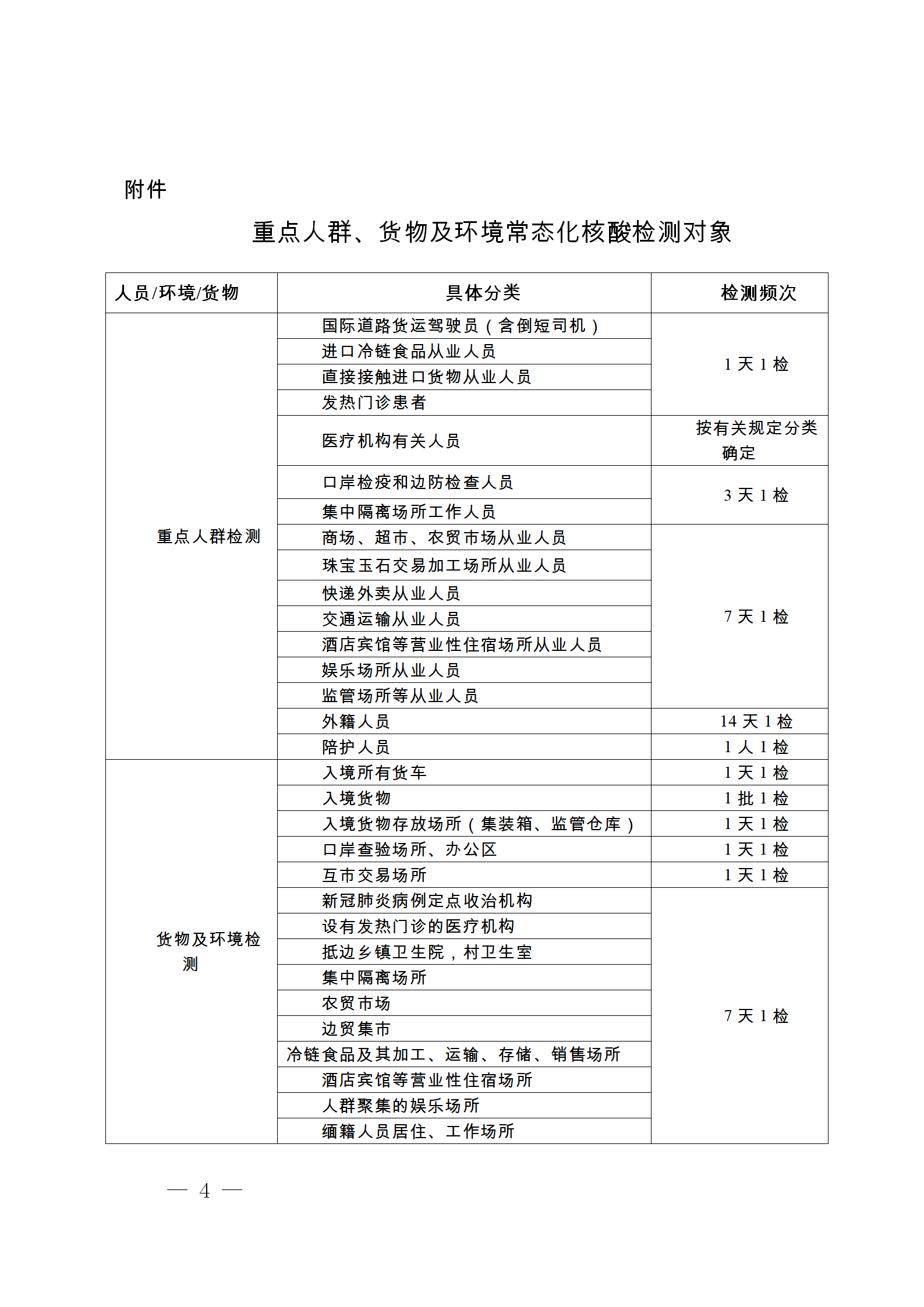 四、继续按“谁受益,谁付费”的原则,对全市重点行业人员、货物及环境(附件)进行常态化核酸检测,涉及单位和个人要压实主体责任,服从行业主管部门管理,主动采样检测。