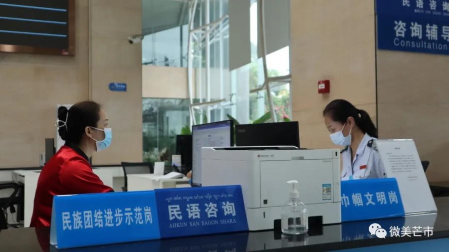 在税务服务中,为进一步顺畅各民族之间的交往交流,为少数民族群众提供更加精准更加快捷的服务,芒市税务局全力推进“一次办成”“一窗通办”,开展傣语、景颇语服务。